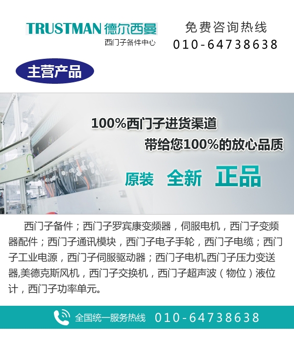 北京德爾西曼專注于西門子備件產品的銷售和解決方案的服務,產品涉及工業自動化、過程自動化、電力自動化,尤其是停產僅作為備件、以舊換新、稀缺、非標、訂制特制備件產品的銷售,針對廣大客戶的需要,公司備有大量現貨,尤